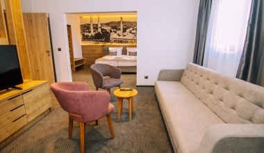 Deluxe apartman je prostran i luksuzno namješen apartman, sa međusobno spojenim dnevnim i spavaćim kutkom. Spavaći dio je opremljen francuskim ležajem, a dnevni boravak udobnom sjedećom garniturom.